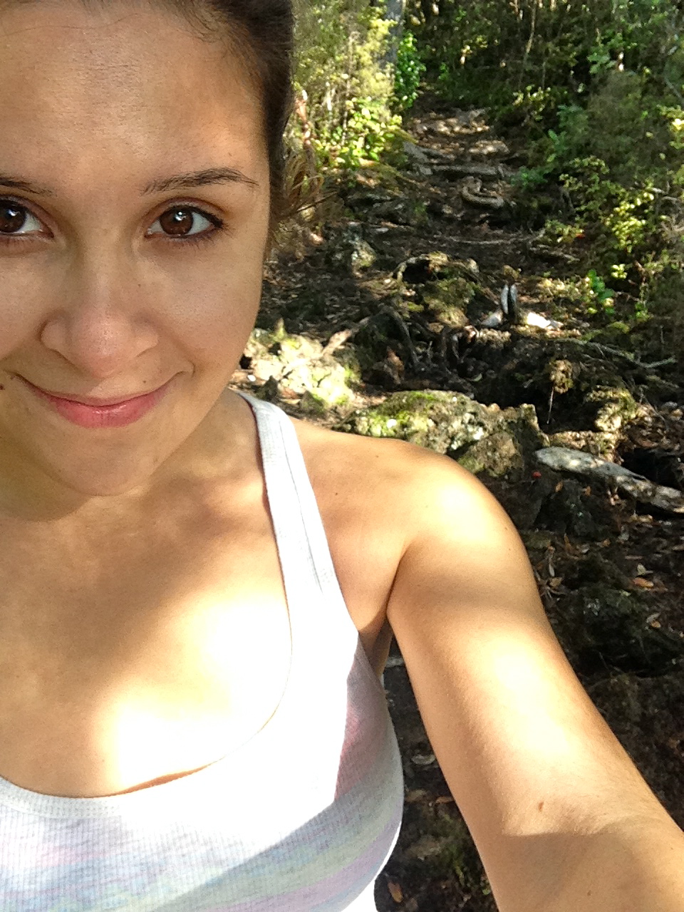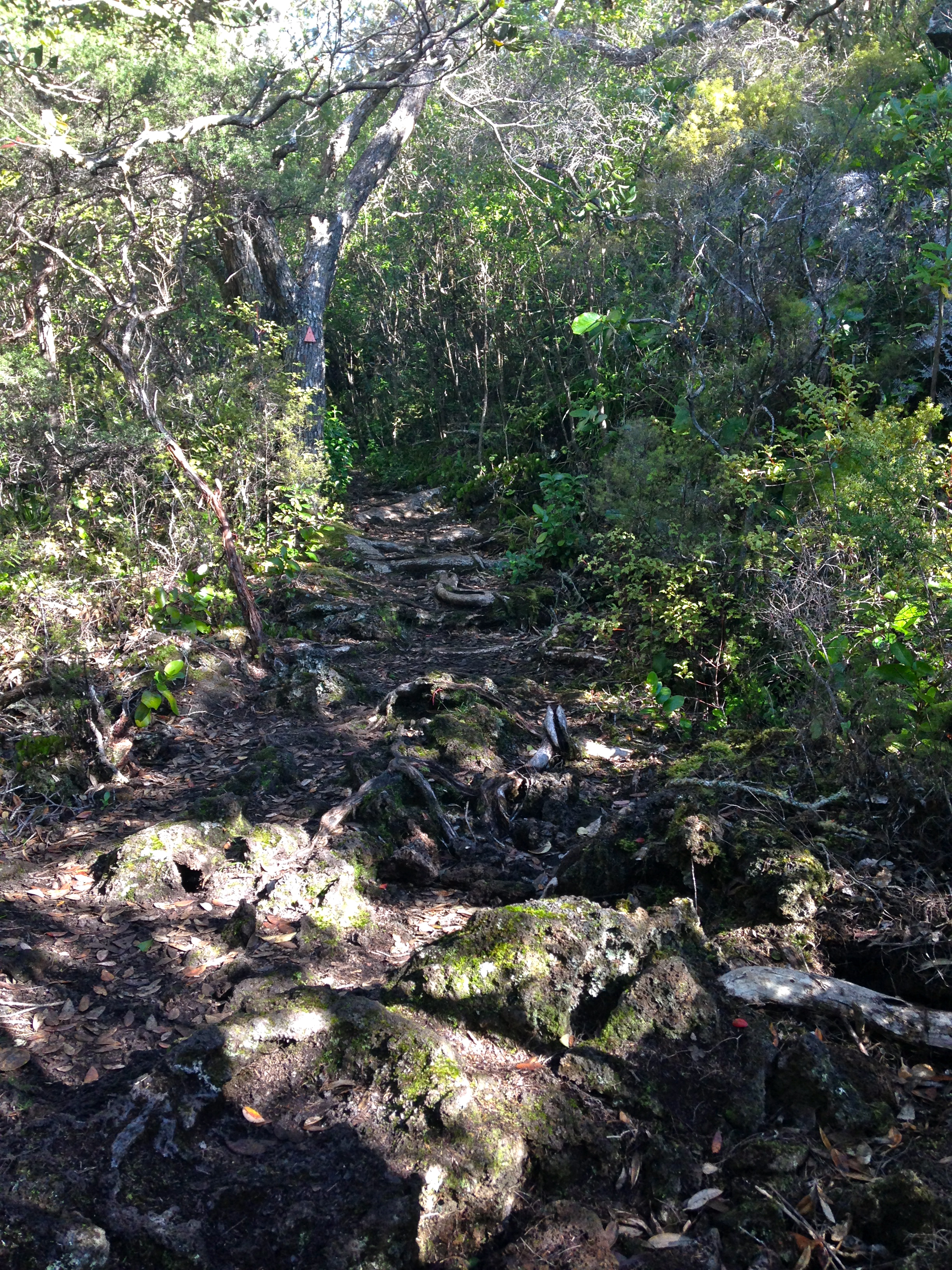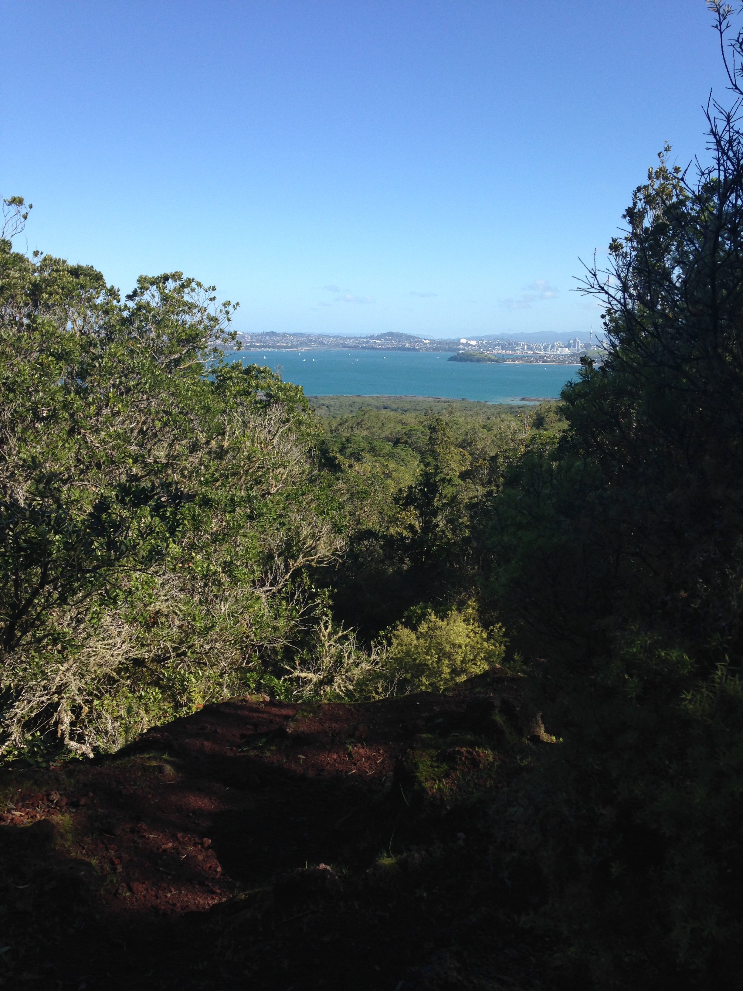 All in all I suppose we walked around 10 km completing a three hour hike around the island and into the summit and lava caves hidden within, to arrive back at the dock to depart to Auckland city central on the last ferry out from the island that day. They were very clear that if you missed this 4:30 pm ferry out, it would be highly difficult and highly expensive to make your own way back to the city. Rangitoto is literally all volcano…and all rock. There were a few empty huts that we noticed along the trail probably there for the few people who wish to sleep on the island? But in all honesty, a nice day hike through the wilderness of Ringitoto was quite enough for me. The hike was mainly guided by a large trail of dried lava rocks. We chose to take the trail down to the summit and caves because we felt like adventurers that day. As we began down that detour we noticed that the trail sort of disappeared and suddenly we were almost fending for ourselves in the wilderness with the help of pure instinct for direction. Climbing up and down rooted tree branches and in and around the hanging leaves. It was somewhat of a cold day but I was sweating! Especially with a nicely filled backpack of water bottles, carrots, apples, and jumpers, we were getting a nice workout for the day.