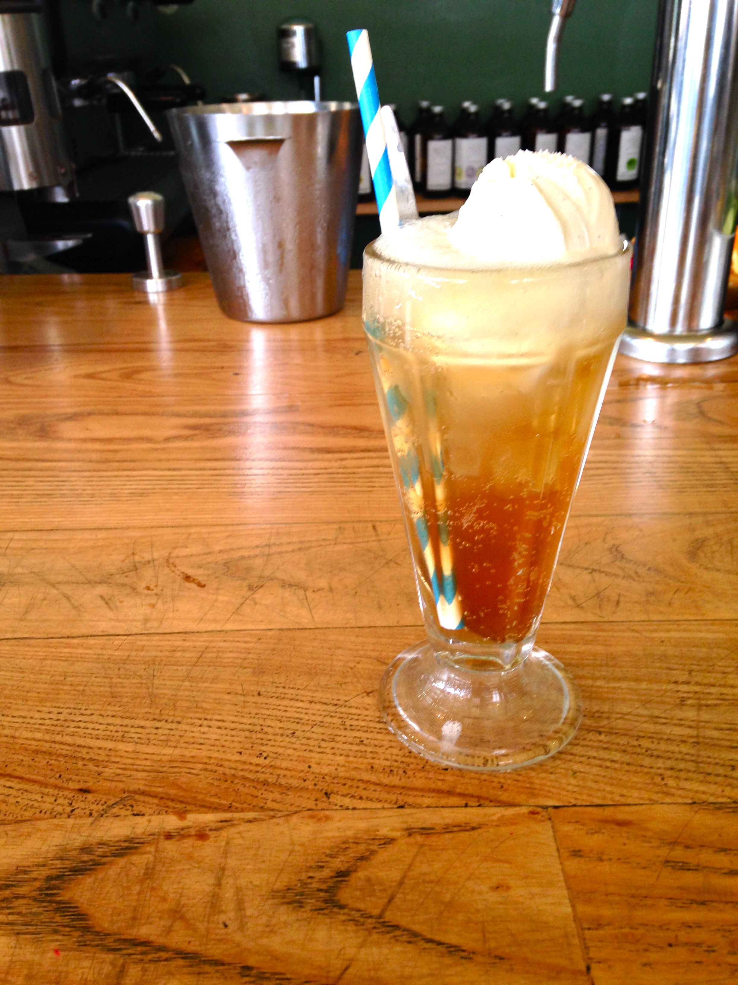 We followed a small white stairway in the side of the building up to the second floor. This is where we walked into this little gem, (picture above). The Six Barrel Soda Company, literally a soda pop shop where they brew their own soda, making the syrups right there in front of you while also serving some delicious looking foods and hot teas. I ordered a vanilla soda float.