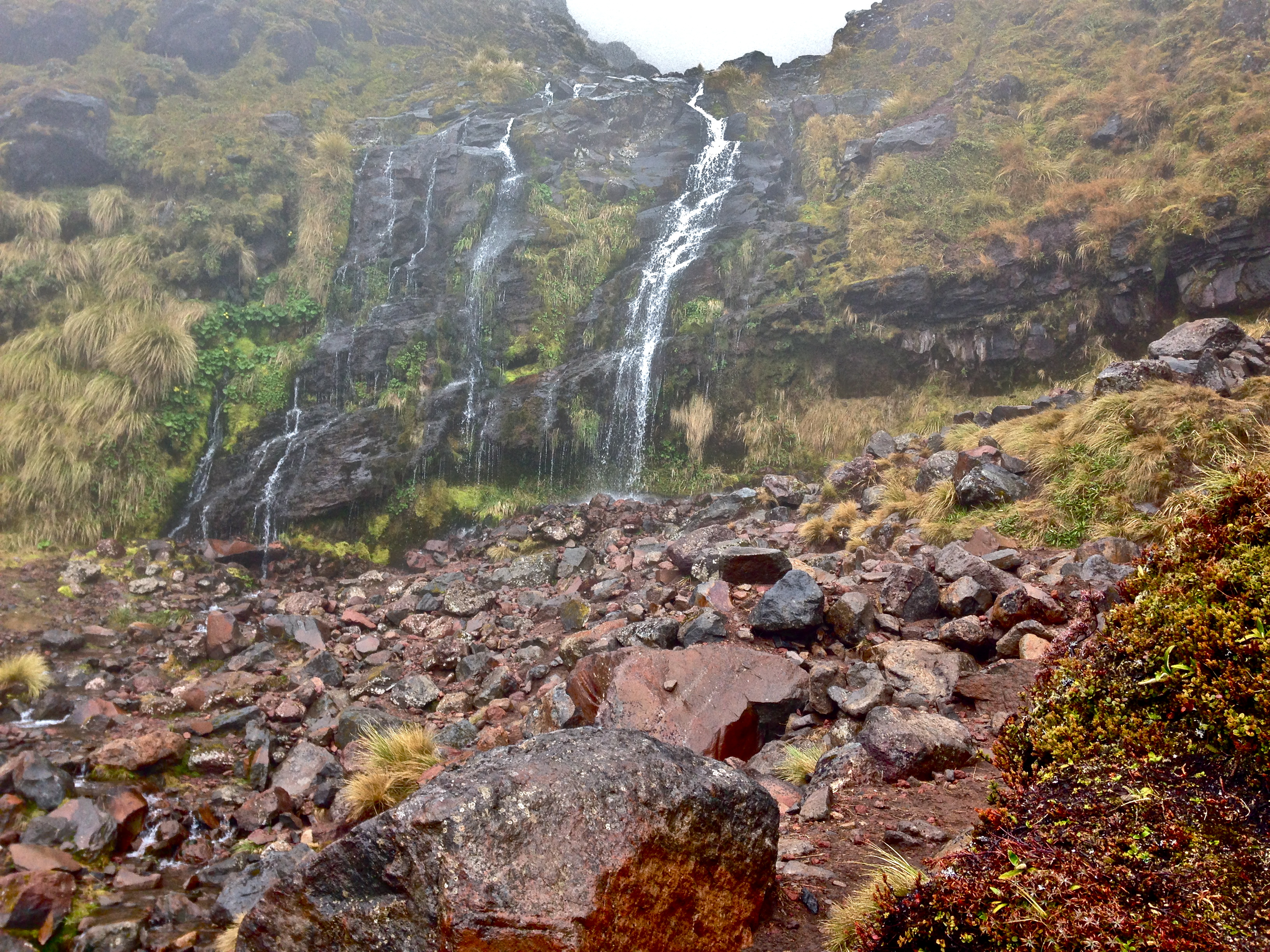 To be honest, I think we picked the worst possible day to do a hike like this. When we awoke in our humble, cabin-like accommodation, I could hear the trickle of water off of the thin, beaten down roof of our cabin. With a pull back of the blinds I stared outside into the wet wet lands of Tongariro… the same lands that we would be hiking in only a short hour from wake up time.