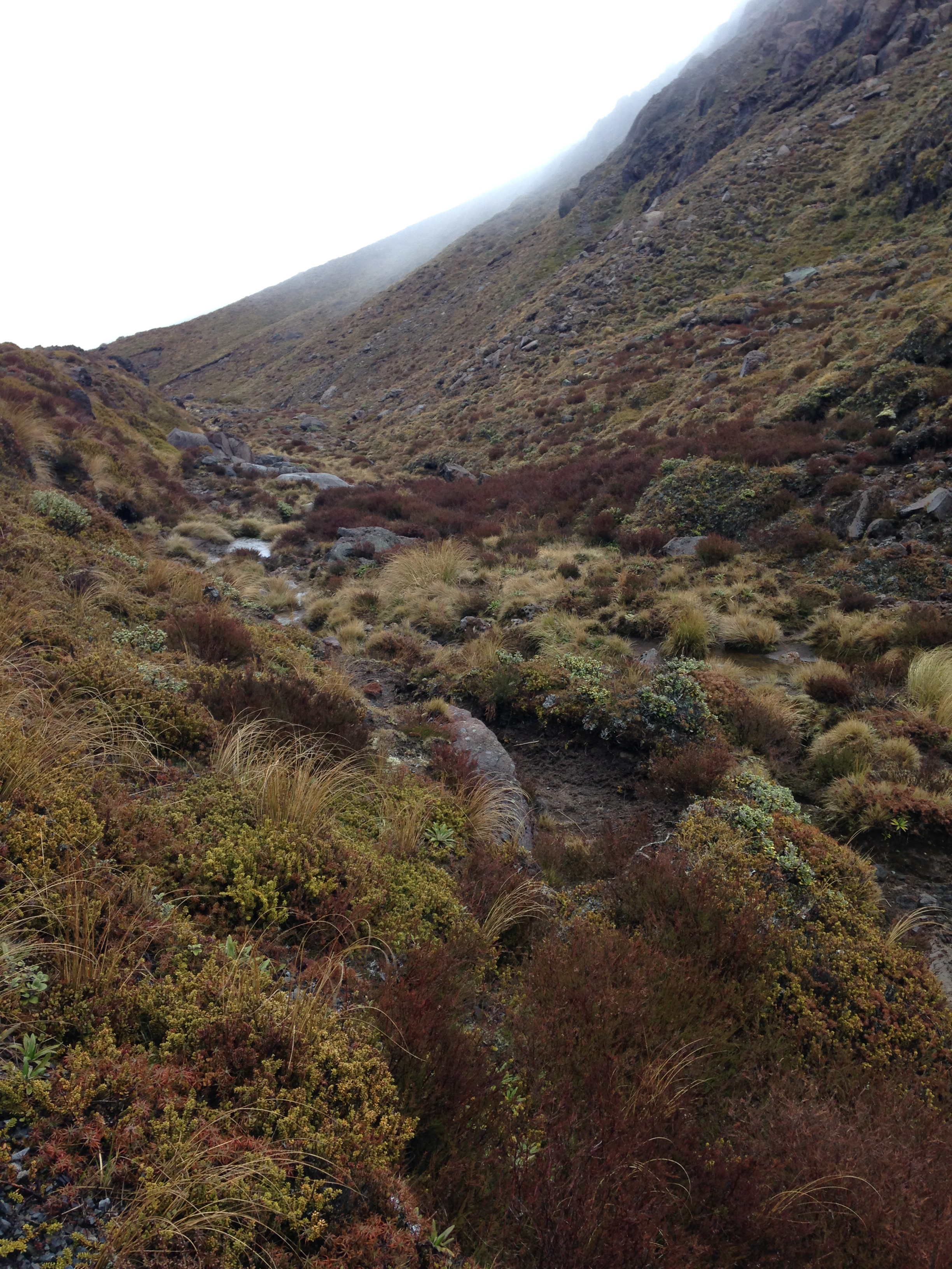 Luckily, the hike was still amazing to me, an American who had never been to this side of New Zealand before. The Kiwis I was with did not seem as impressed… but they thought we would still give the hike a try. It was FREEZING. And not only that… there was soaking wet rain that came pouring down in increments between the thick fog and misty clouds that were also responsible for covering half of the scenery in front of us. Heck… I couldnt even see the top of the mountain we were climbing up. It was pretty sad.