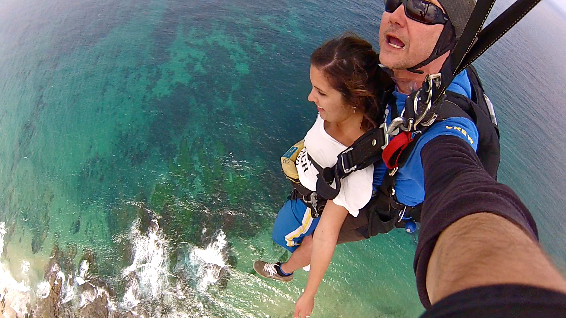 My skydiver took my hands and let me “drive” the parachute, we went and stood on clouds, did corkscrews in the sky, and gazed down at the beautiful ocean below us as if we would never come back to earth. In that moment, I wanted to stay up there forever.